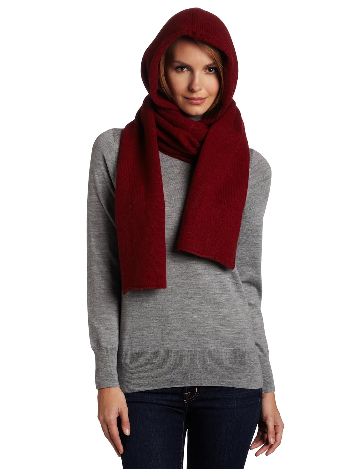 Product Description : A deep, dramatic hood integrated with long scarf ends